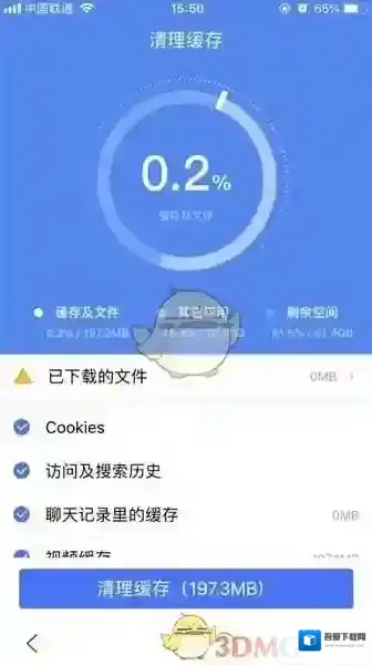 4、进入“清理缓存”软件将自动识别下载的文件、聊天记录中的缓存、视频缓存等数据,点击清理缓存