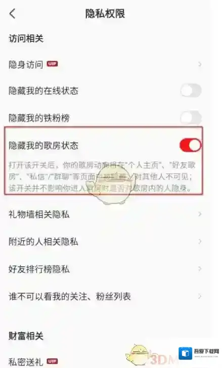 4、然后我们选择右侧按钮,隐藏我的歌房状态。