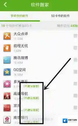 6、对于手机内的如果是不建议搬家的,在软件下方会有不建议搬家,就不要搬家了。