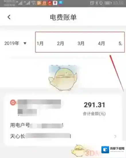 2、默认显示为当月电费使用情况,可以点击年份进行切换;