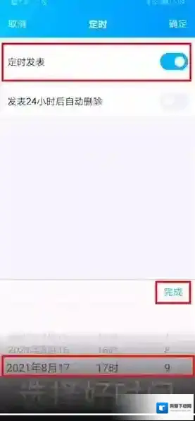 7、再点击右下方的钟表图标,点击定时发表,选择好时间;