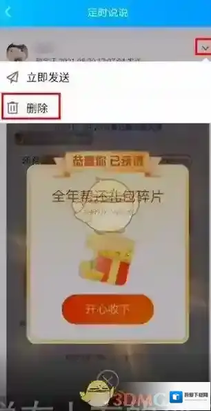 4、选择要修改的定时说说,点击说说右上方的倒三角标志;