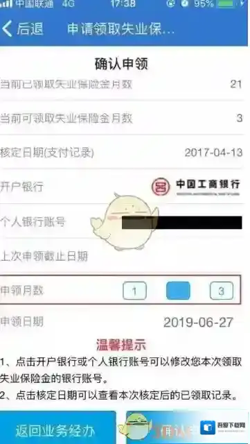 3、点击“业务经办”→“失业保险服务”→“申请领取失业保险金”→点击“以上告知已知晓”→“最近一次申领情况”→“确认申领”→“修改绑定银行账户”→“银行校验”→“返回业务经办”→“选择申领月数,申领日期”→“确认申领”即可。