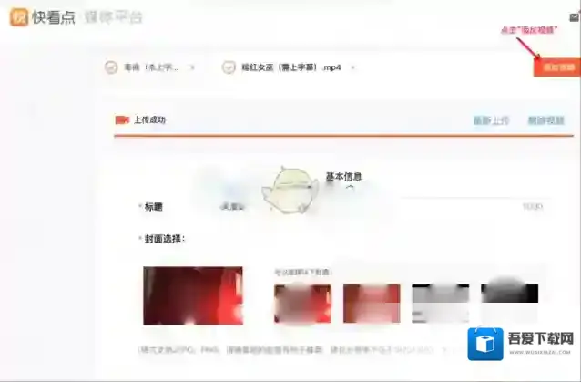 3、点击“上传视频”添加视频基本信息–填写视频标题–选择视频封面及基本描述;