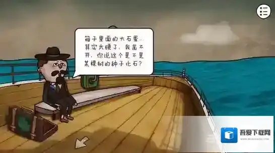 返回甲板,你把自己辛辛苦苦得到的蓝色羽毛给了眼前的小胡子。小胡子一阵感慨,终于见到了传说中的蓝色羽毛,这样吧年轻人,我的箱子里有我以前旅行攒下的一些奇妙的纪念品,你看有什么看的顺眼的就拿去吧。