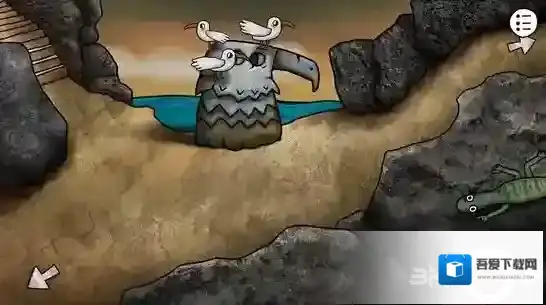返回时空门,你发现神庙阶梯那里的海鸥是可以点击的,蜥蜴也是可以点击的,并且两者的移动轨迹似乎有些奇妙的规律。