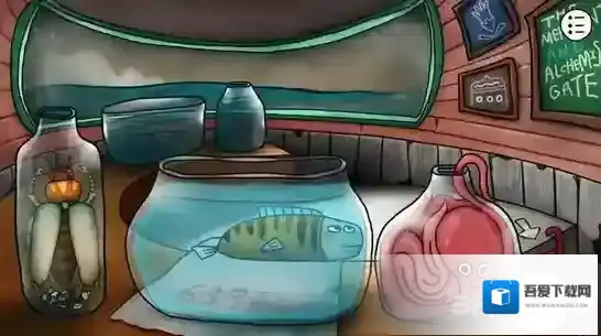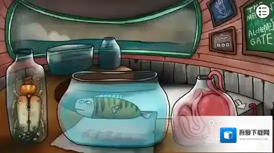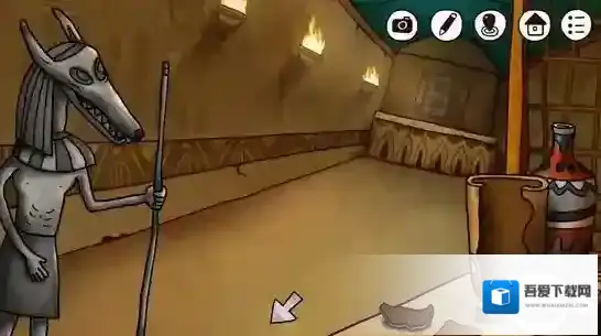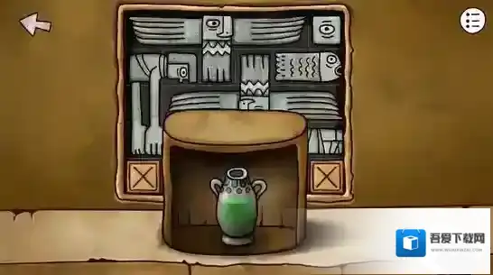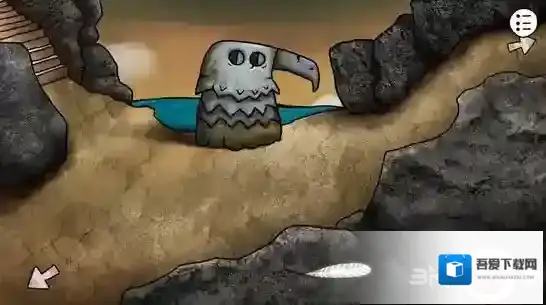 点击右边的陶罐,多次点击破碎之后取出中间的石饼,取出之前剖开大鱼得到的矛头,安在雕塑上的棍尖,轰隆一声,雕塑的嘴张开了,甚至还吐出了一个神秘的蓝珠子,拿走它。
