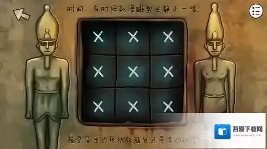 雕像胸前的机关缓缓打开,石块不断掉落让你惊慌躲避,当你终于回过神的时候,发现雕塑胸前在空中投影出来六个神秘的图案!