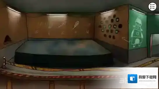 你上前向外星人搭话,可是它并没有理你(也许是担心被你吃掉),它诡异的抽搐了几下,在浑身绽放的刺眼闪光中神秘消失了,只留下对面墙壁上的五个符号和图案。