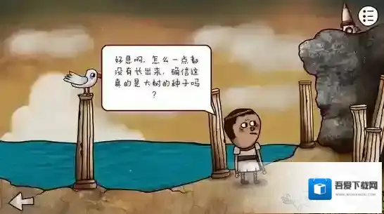 你上前与小男孩交谈起来,小男孩说:1.这上面有东西可惜爬不上去;2.他如果有个种子的话或许就有办法上去了,想让你帮忙找找种子;3.时空门附近的蜥蜴想捉住海鸥却总是没有办法。