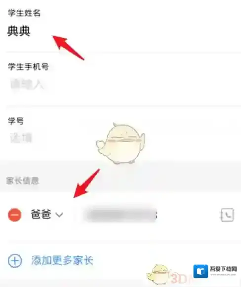 5、点击后,可以修改学生的姓名,点击下方的家长信息;