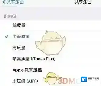 4、若是多个音轨混合的用户,只需要将多个音轨进行混合即可,之后重新在上一步点击“乐曲”选项,将会进入到共享乐曲界面,在这个界面中选择合适的音频质量,