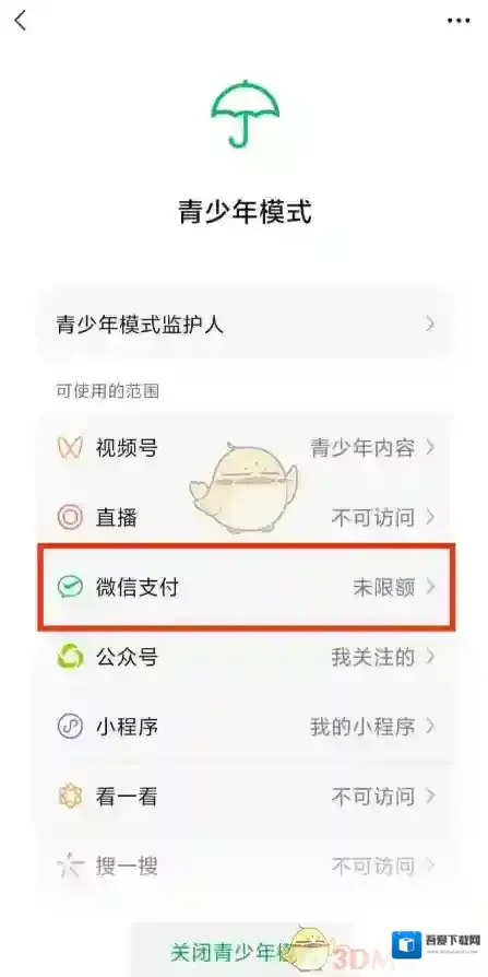 《微信》青少年模式限制消费设置方法