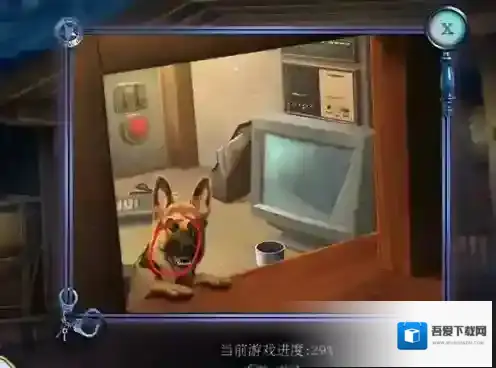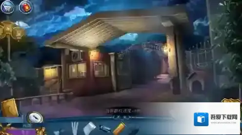 82、保安室,骨头喂狗,叉形木棍+橡皮筋=弹弓,保险柜使用弹弓、栗子,打开开关按钮,打开大门。