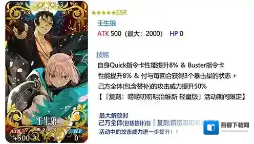 点数奖励礼装壬生狼增加己方全体从者的攻击威力↑。