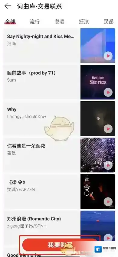 5、选择自己需要的词曲类型,选择好之后,点击我要购买即可。