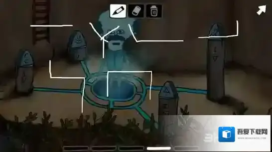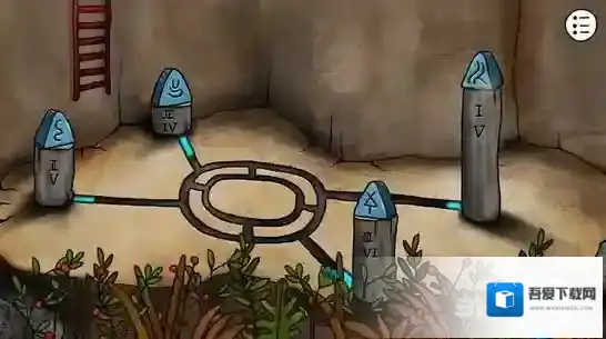 顺着梯子爬下去,你又发现了另外一个奇妙的石阵,你将对应的三角摆放到正确的位置上。