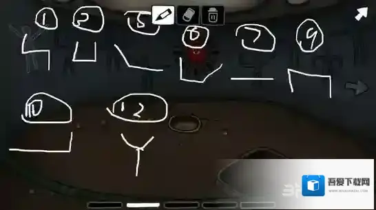 不待你细想,老头突然开始做起了诡异的健身操,联系到之前石室墙壁上的人物图像,你隐隐明白,这是老头在向你传达机关的顺序,于是你拿起笔记下了这一切。
