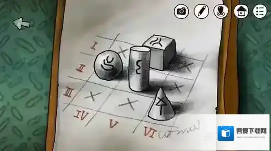 这时你想起了卧室的素描,似乎只有方块的形状有用过,但是上面的神秘图案还是没有破解。