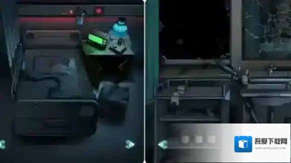 3、进入病房触发剧情,在桌子处收听收音机,查看水池旁的窗户和镜子,得到手机密码3297。