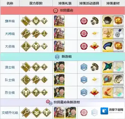织田幕府足轻级组头级新选组书生级门生级番头级旗本级大将级勇士级浪士级队士级大名级文明开化级烈士级