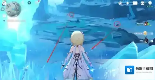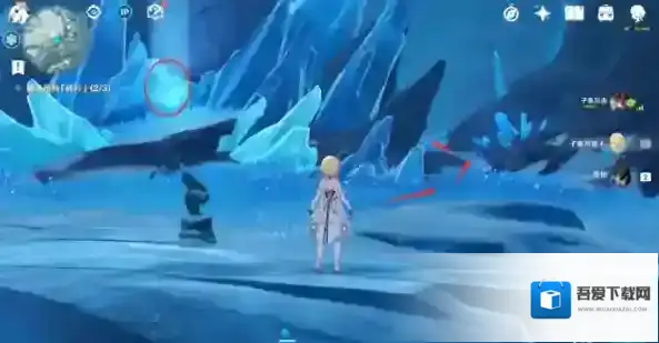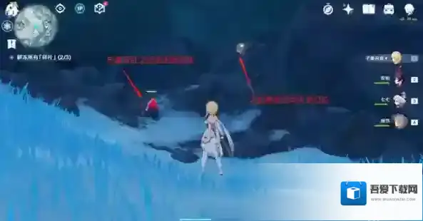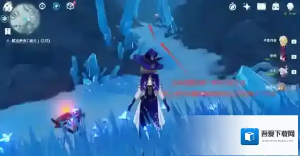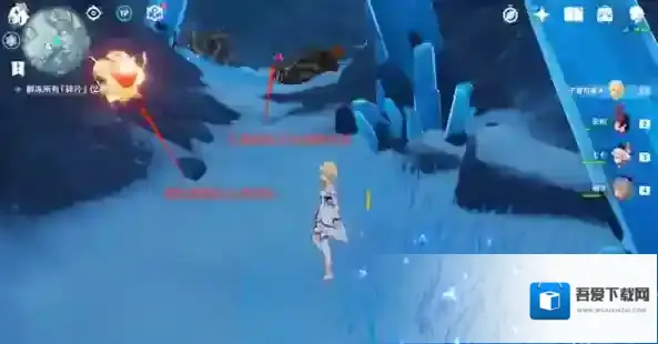 第五步:有两个深赤之石很明显,就在湖面边上,击碎后拾起迅速过来解冻(慢了的话深赤之石附着状态可能会消失,可以用安柏远程射)