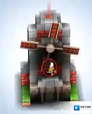 3、小黄人到达圈圈处,利用风车转动,击飞小黄人