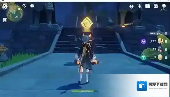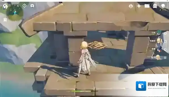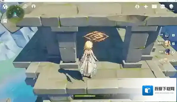 先和石碑对话 然后用岩元素点亮图中的那个发光标记 (图中为已经点亮的)