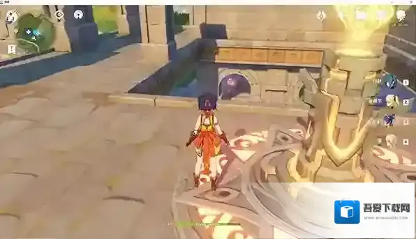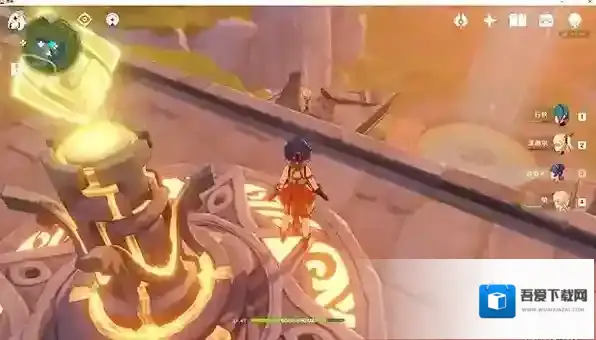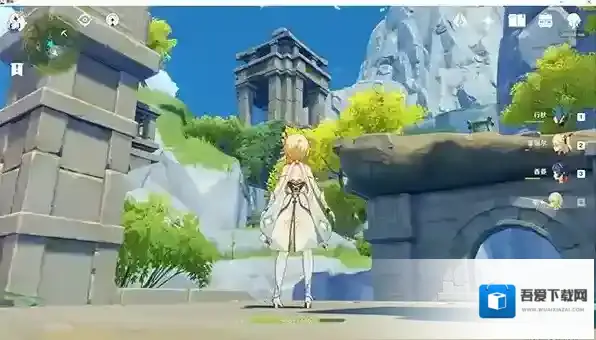抬头前方两座塔,可以从图中看到两个发光的黄点,同样岩元素点亮 然后回到图中位置