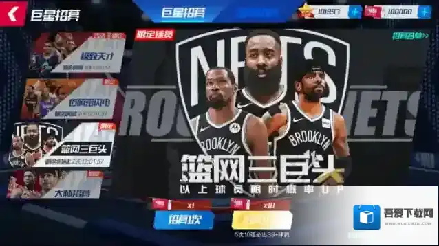 活动期间内,在“篮网三巨头”球员池中,抽到新增篮网队限定球员詹姆斯·哈登、凯里·欧文、凯文·杜兰特的概率up!