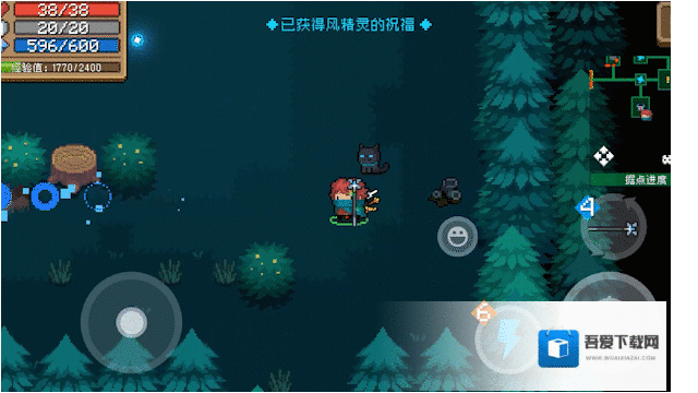 游戏存在风精灵事件时,风精灵会出现在森林关卡的随机位置中。收集三个风精灵后,将得到风精灵的祝福,获得移动速度加成。