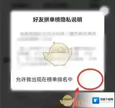 5、最后在页面里弹出的窗口中“允许我出现在榜单排名中”的后面点击开关按钮,把它设置为关闭状态即可。