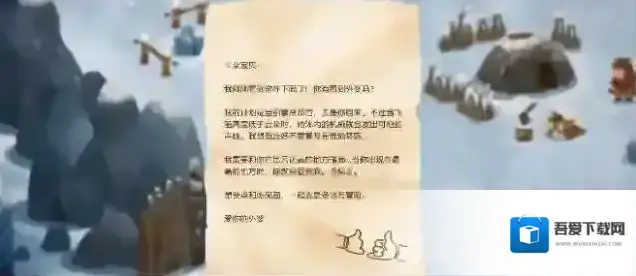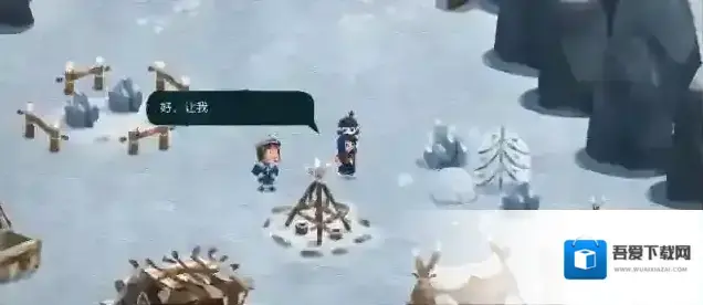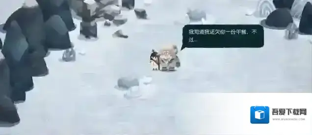 1、我们从拿到海图之后就会来到冰川开始探险,然后跟角色对话,这个角色给我们了一条毛巾;