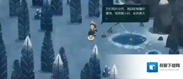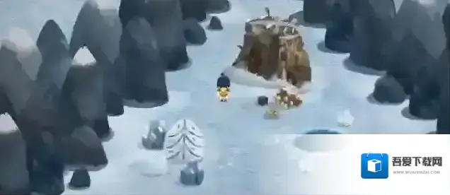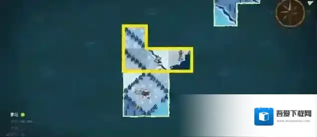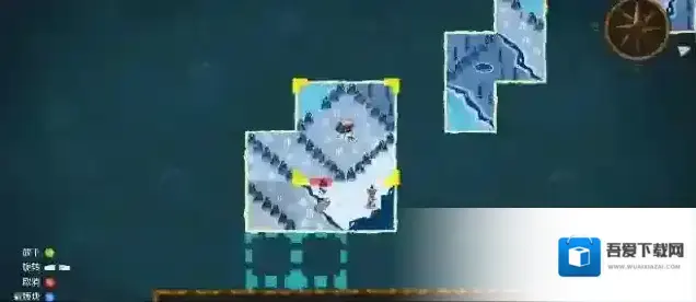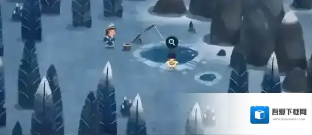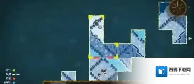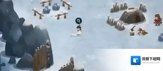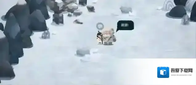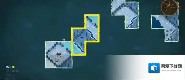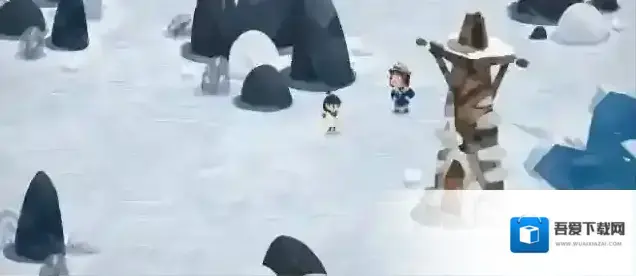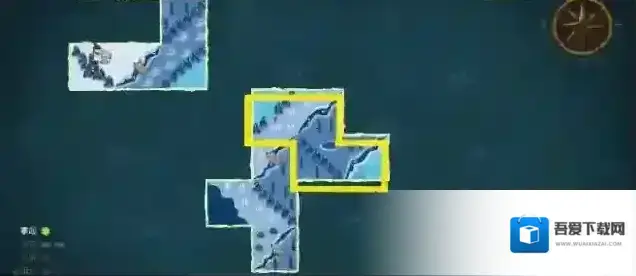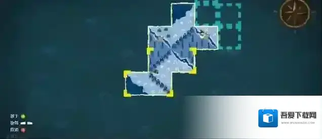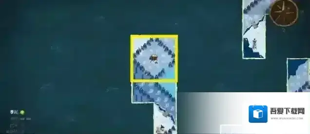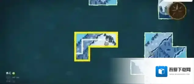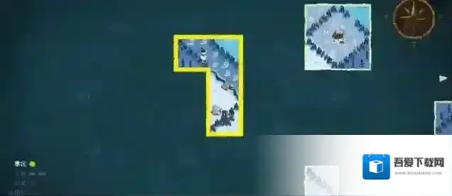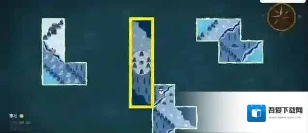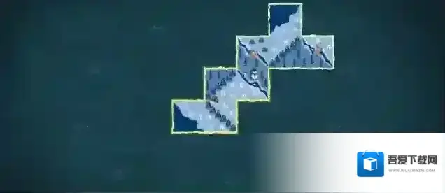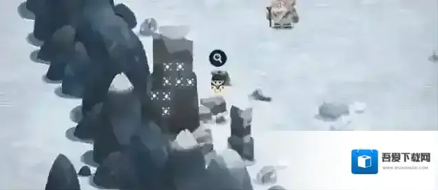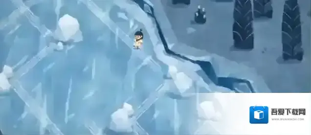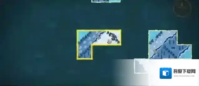 7、地图中蓝色的区域是冰块玩家需要桂滑动才能找到老爷爷,拼成下面的样子就能找到老爷爷的地方了;
