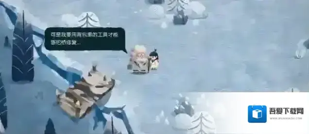 4、拼成下面的样子就能找到背包了,然后把背包给老爷爷,老爷爷就会啊修好,但是他要去检查别的桥了,还欠我们一顿午饭;