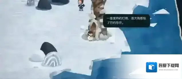 10、在这里会看到你一个新的角色就是之前森林里面大叔的儿子,我们把木船交给他,他在这里看守灯塔但是灯塔不亮了,玩家需要把灯塔变亮起来;