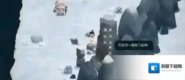 14、找到之后老爷爷把右边的石碑清理了一下,会有标志,然后我们需要把地图拼成这个样子就能使石碑亮起来;
