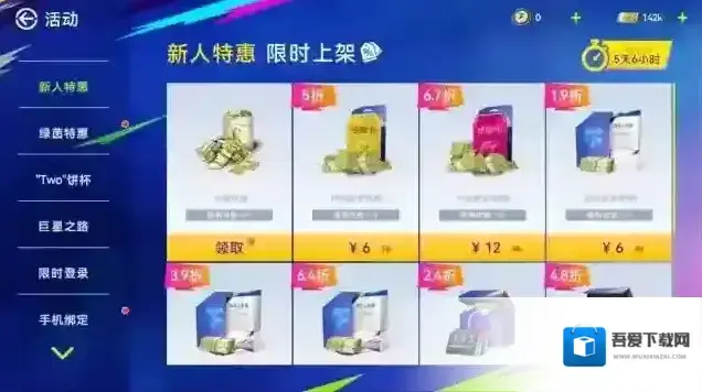 新手特惠礼包开启!巨星签约信、各种超稀有球探卡、经纪人合同、经验卡、欧元等游戏资源均超低折扣出售,还有概率获得黑卡后卫!礼包限时限量,售完即止!