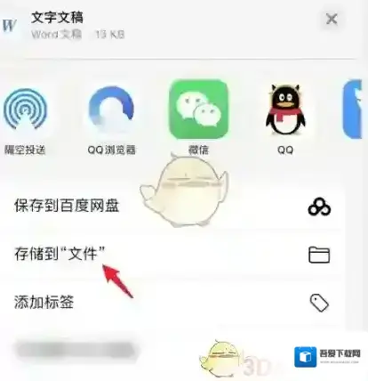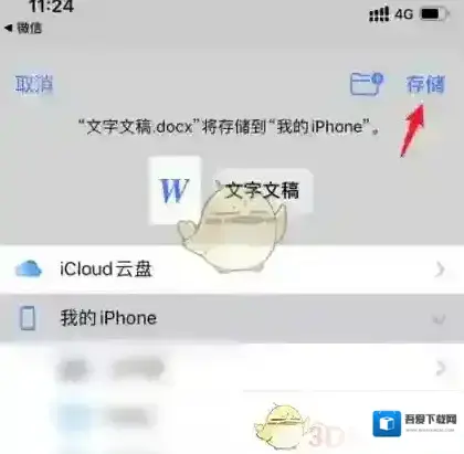 5、选择右上角的存储选项,即可将金山文档导出到手机中。