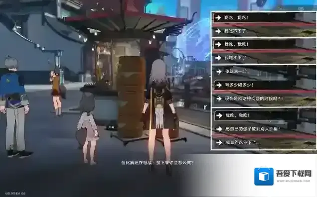 来到小吃店前,与商店老板对话,参加大胃王比赛