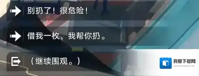 之后与分别与寡言的男性和兴奋的少女对话,选项图中标记的选项
