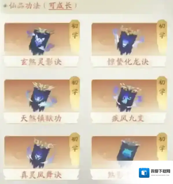 毕业功法即仙品功法,可成长,融合至六重将成长为神品。