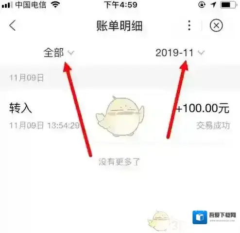 6、在这个页面中,就可以看到账单明细了。另外,还可以点击全部和时间,分门别类地查看明细。