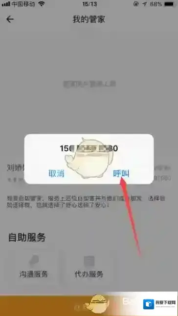 6、然后会弹出管家的电话号码,点击“呼叫”联系管家,说明原因即可,如图所示。