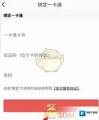 5、进入绑定一卡通,输入一卡通卡号与验证码、密码后,点击下方的绑定进行一卡通的绑定。