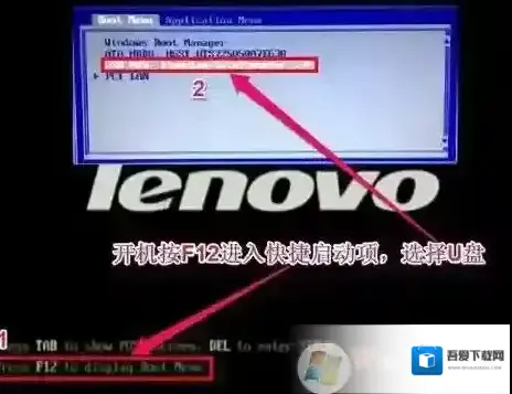 5、保存设置后自动重启进入LOGO画面时,一直按F12,选择U盘启动,如图所示: