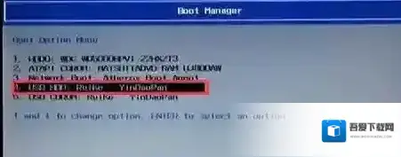 4、插入U盘启动盘,重启时不停的按下f12,打开Boot Manager,选择USB HDD回车从U盘启动,如下图所示;
