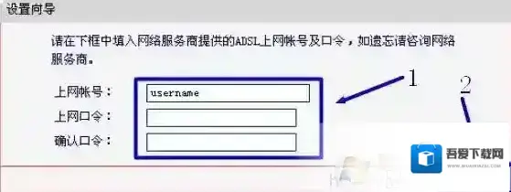 4、填写上网帐号:根据ISP宽带运营商提供的上网帐号和上网口令进行填写,然后点击“下一步”。