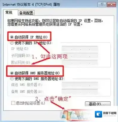5、勾选“自动获得IP地址”和“自动获得DNS服务器地址”选项– 点击“确定”