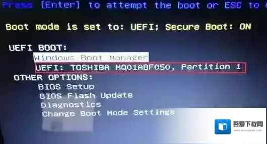 5、插入U盘启动盘,重启时不停的按下f12,打开快速引导菜单,选择识别的U盘启动回车从U盘启动,如图: